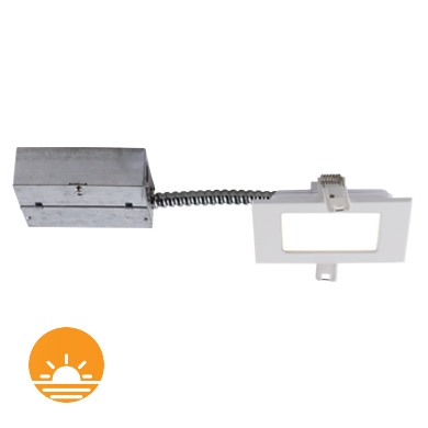 LED recessed light fixture - Insulated ceiling rated for direct contact with insulation - For all interior applications - Compact & flexible fixture designed for ceiling clearance of 1-1/2” (38mm) and more - Warm Dimming Soft White to Warm White - 700 Lumens - Brightness equal to 65W halogen - Suitable for damp location