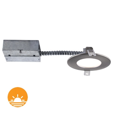 LED recessed light fixture - Insulated ceiling rated for direct contact with insulation - For all interior applications - Compact & flexible fixture designed for ceiling clearance of 1 ½” (38mm) and more - Warm Dimming Soft White to Warm White - 700 Lumens - Brightness equal to 65W halogen - Suitable for damp location