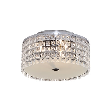 Plafonnier rond avec abat-jour en verre taillé et diffuseur en verre givré